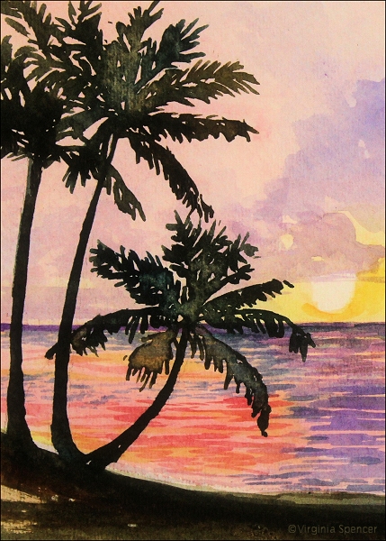 sunset palm trees watercolor