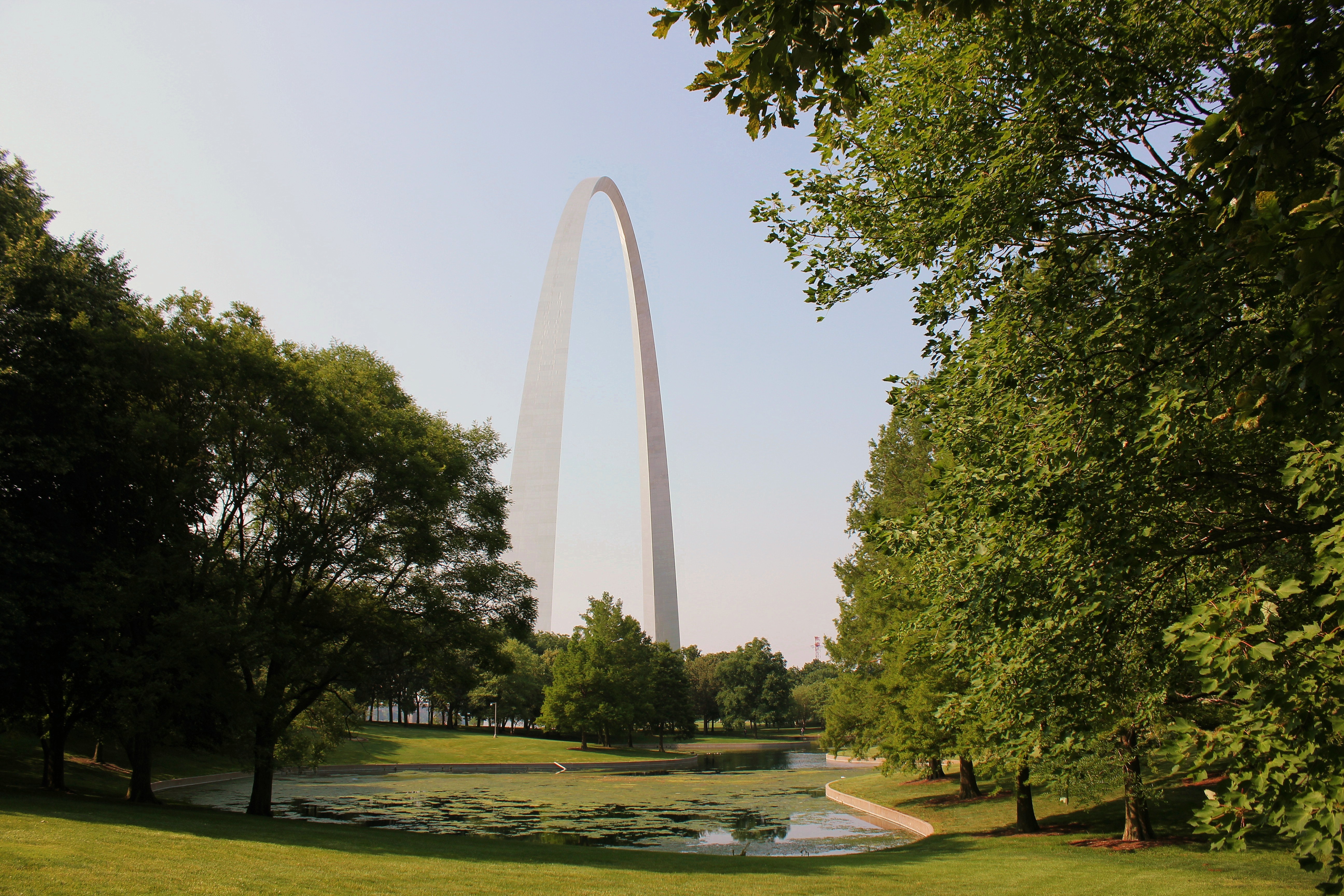 Take the tree lined path. And forget about taking any more photos of the Arch because the leaves while pleasantly providing much needed shade block the view. Then stand around aiming at the leaves as if your camera can magically see through them. Perhaps, you could sigh a little for effect.